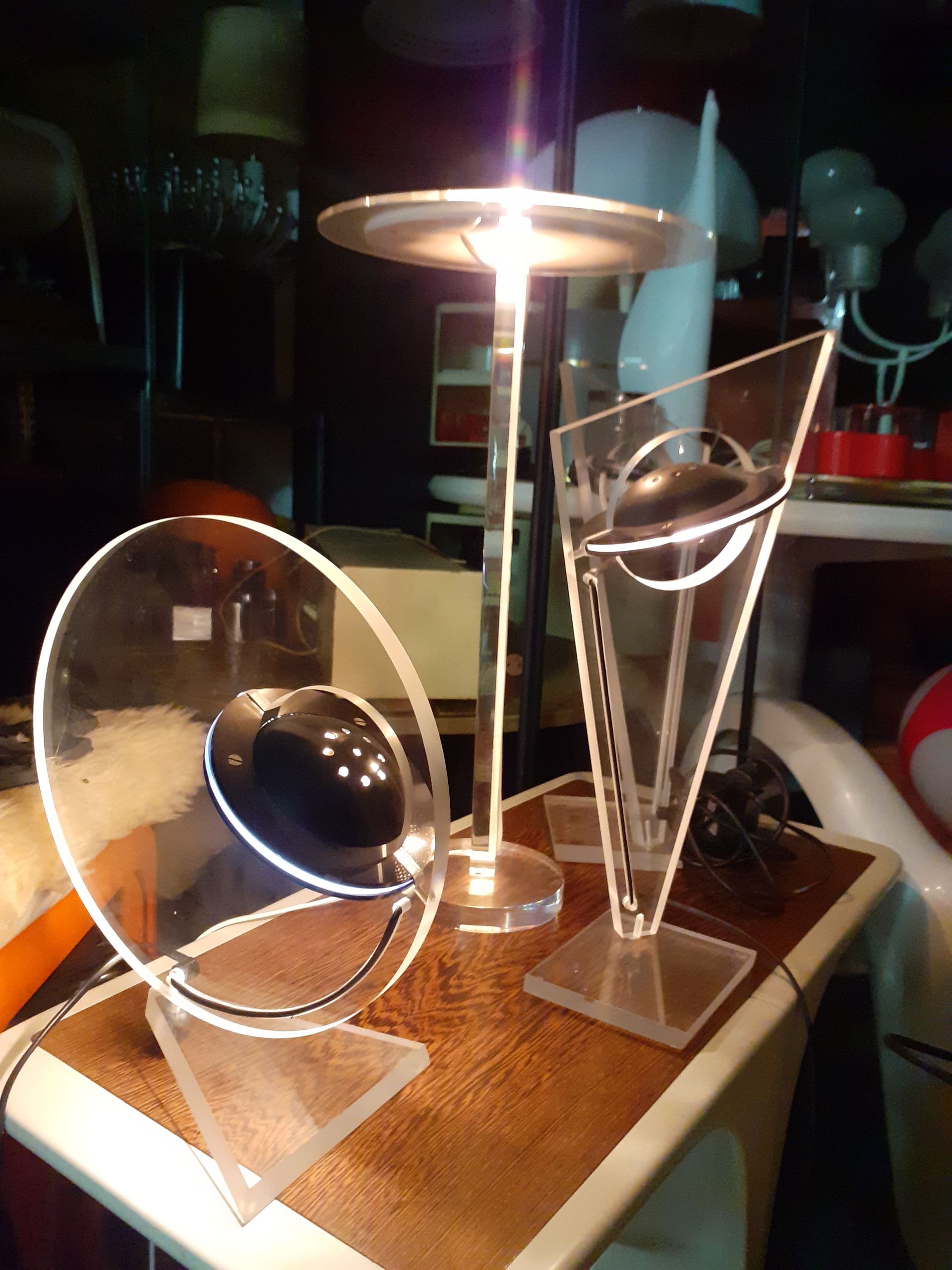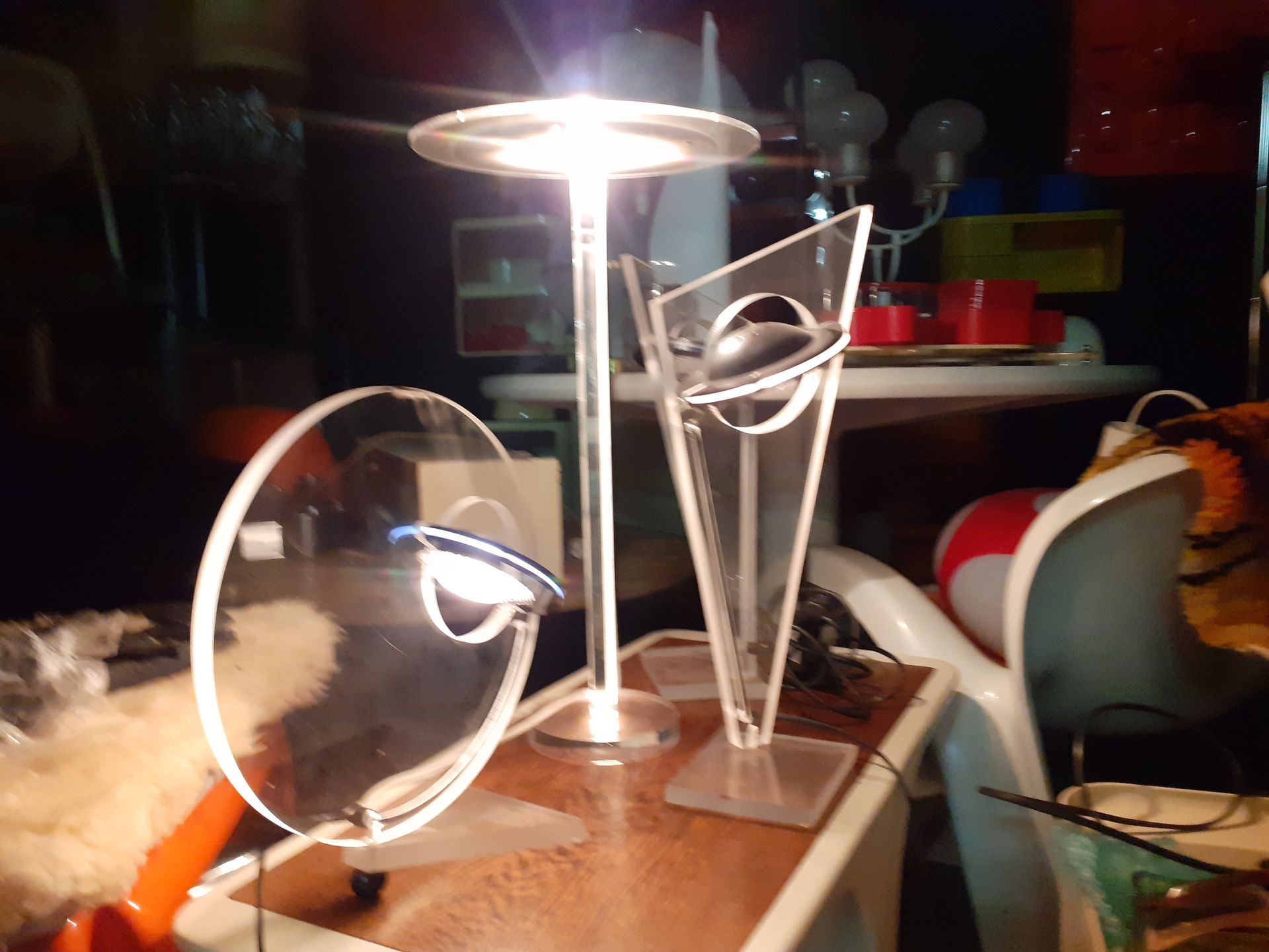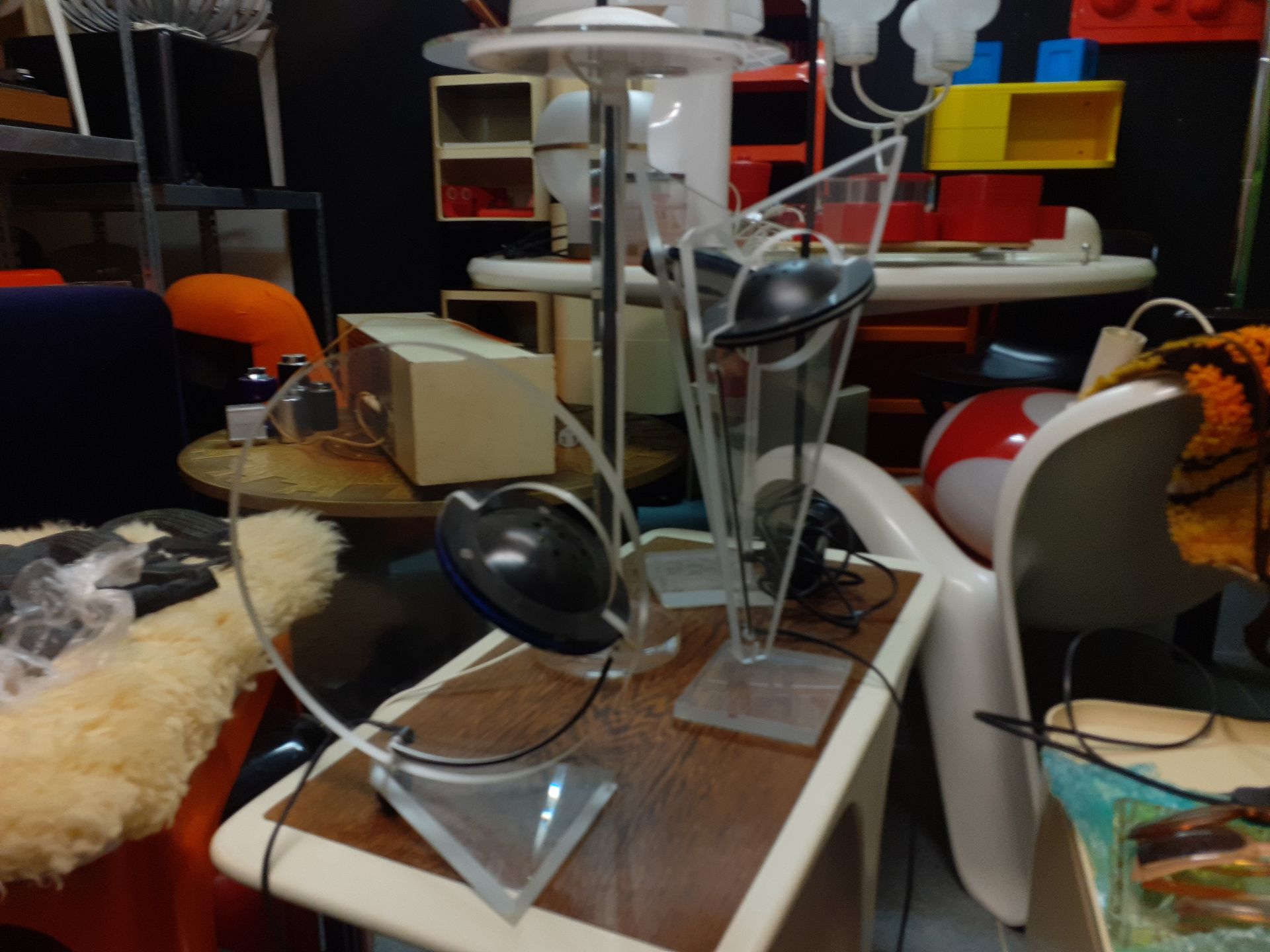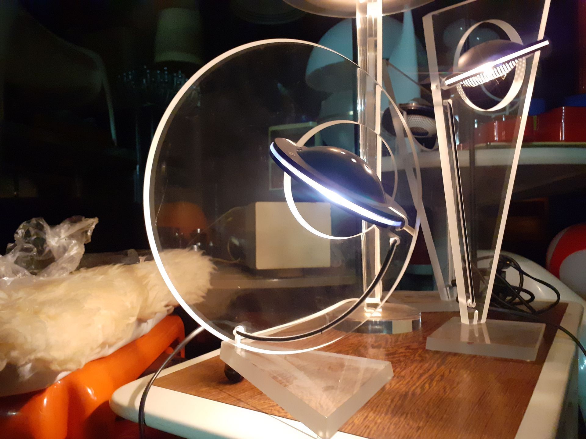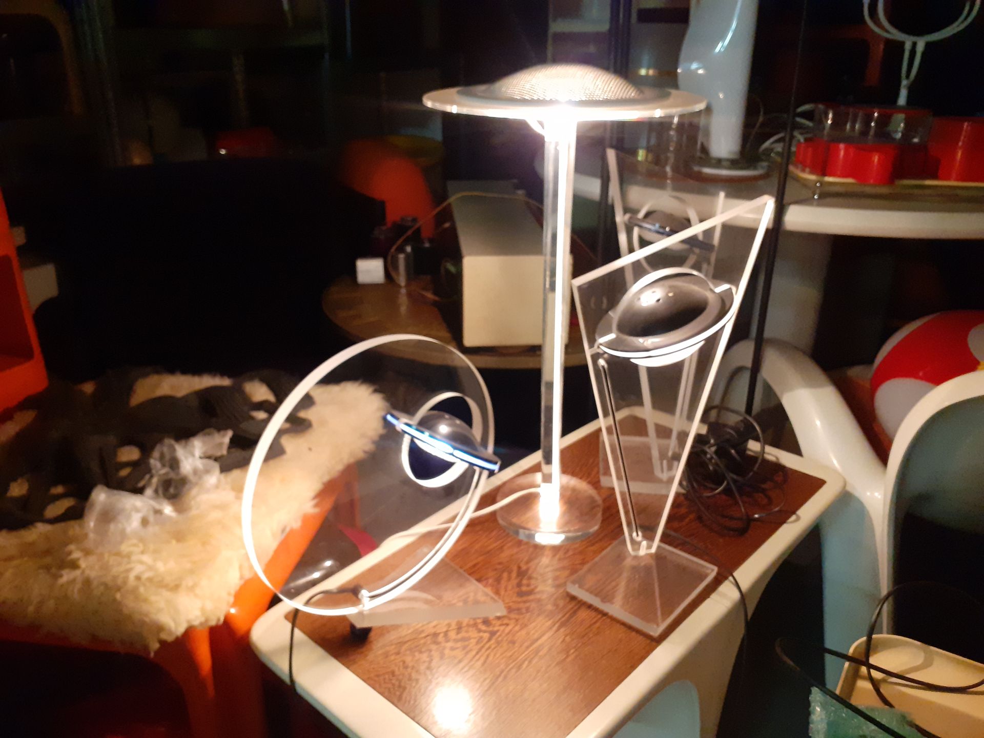transparant plexi acryl tafellamp knoop op kunststof voet space age design